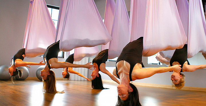 Йога в воздухе – это новое и уникальное направление, сочетающее в себе асаны йоги, лечебную гимнастику, растяжку, фитнес нагрузку и самое приятное – релаксационные позы в гамаке. Благодаря выполнению упражнений в воздухе, снижается нагрузка на позвоночник, тело освобождается от напряжения, проходит дискомфорт в шее, спине и пояснице, что особенно важно после тяжелого рабочего дня в офисе.